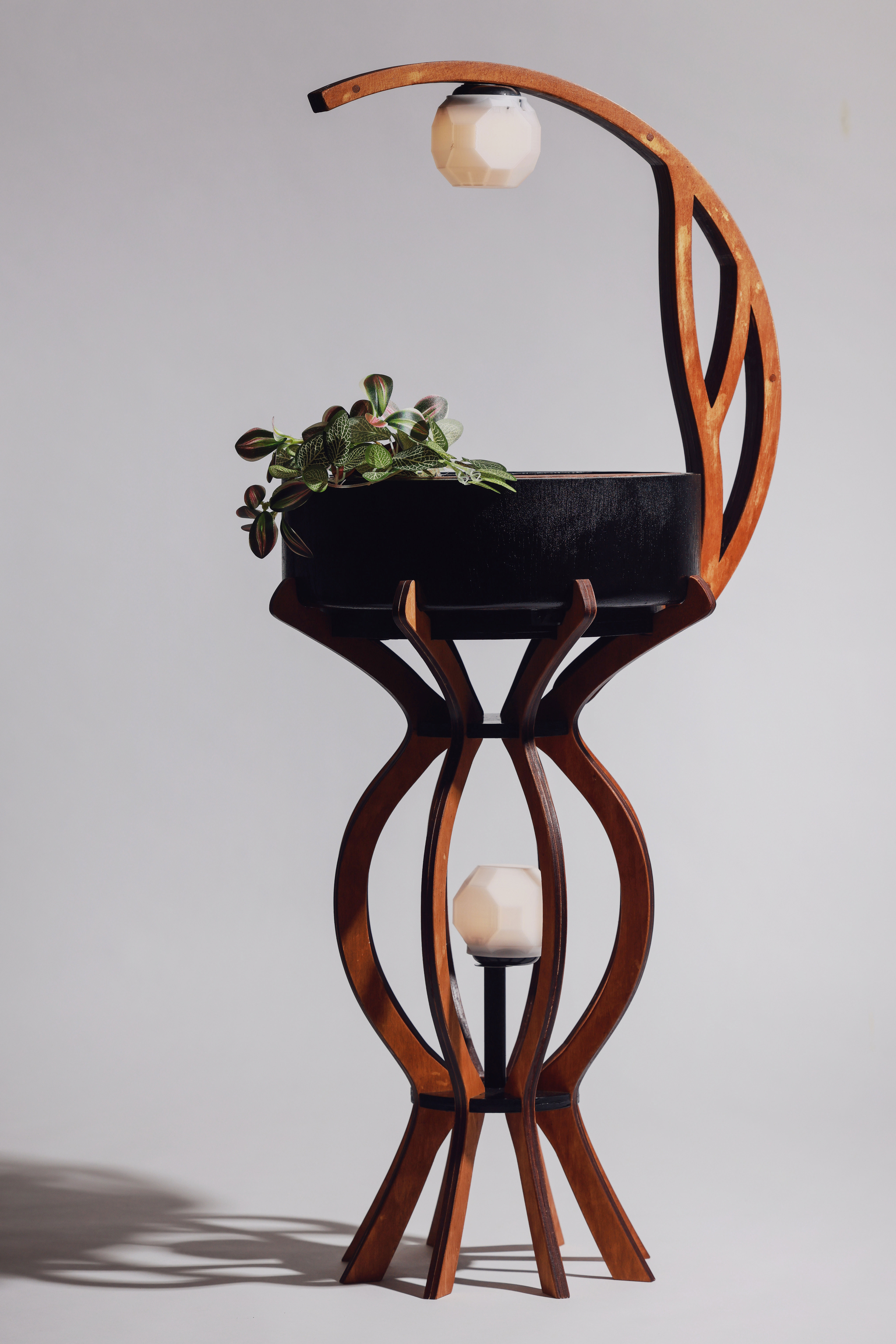 The function of this product is to provide a therapeutic outlet for the end-user, addressing the problem of mental health decline, by incorporating both interactive and soothing features through horticultural and lighting perspectives. I experimented with new and emerging technologies, including CAD software, laser cutting and 3D printing, and considered the potential for larger scale manufacturing. Inspired by the sustainability framework and by design for disassembly, I created this product to be dismantled easily, making its disposal and repair more feasible.