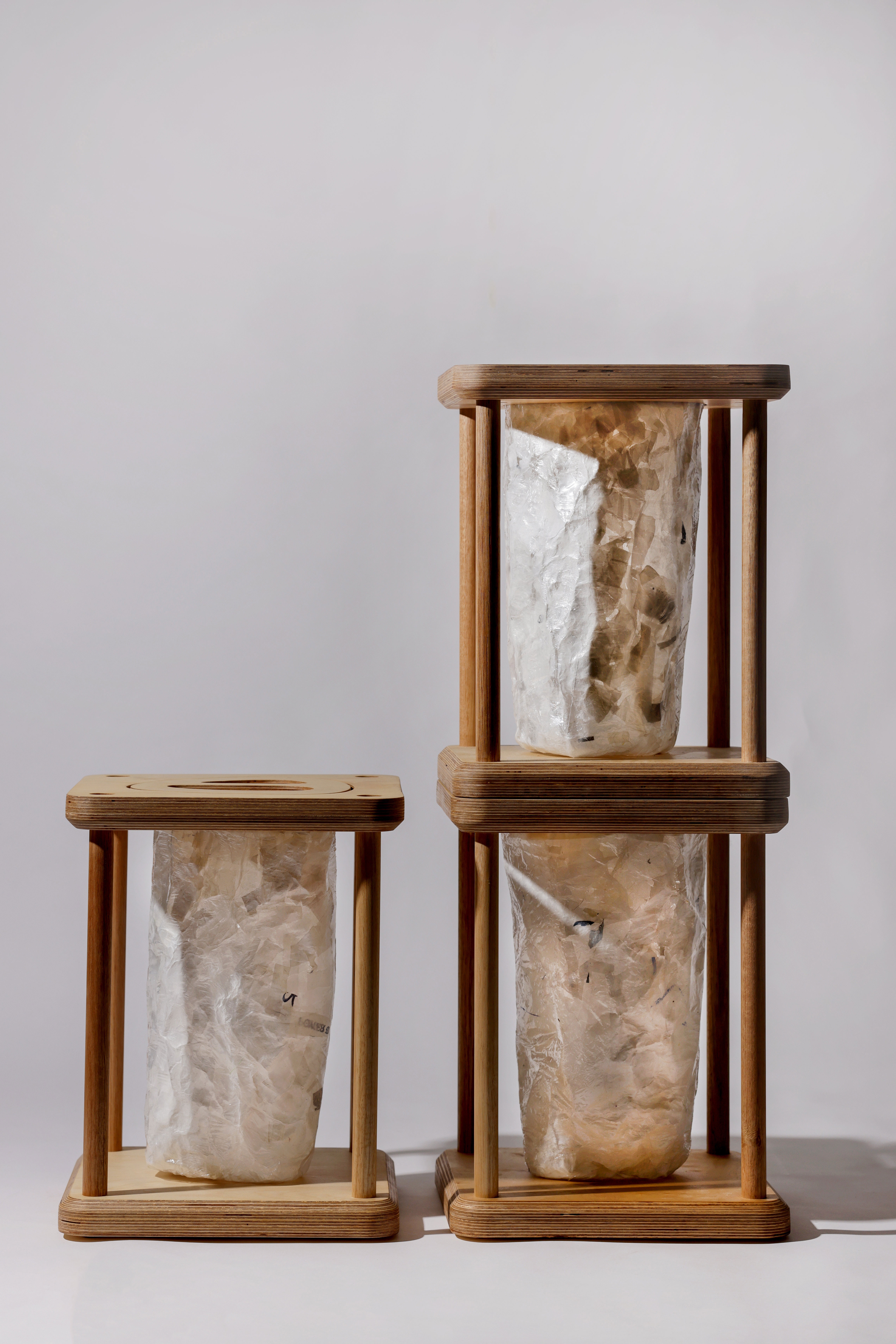 Birch plywood, Tasmanian Oak, recycled Low-Density Polyethylene (LDPE)