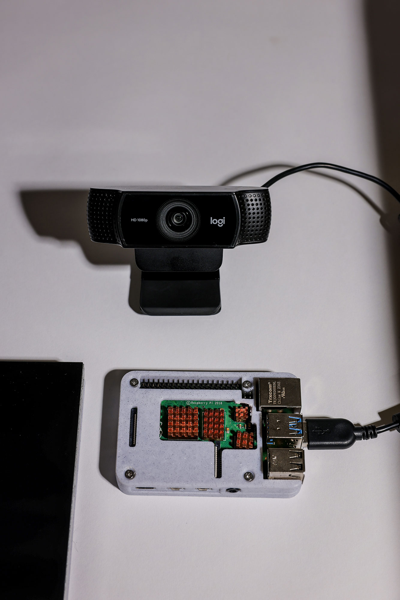 Raspberry Pi 4b 8gb, USB Webcam, copper heatsinks, Raspberry Pi housing, external monitor