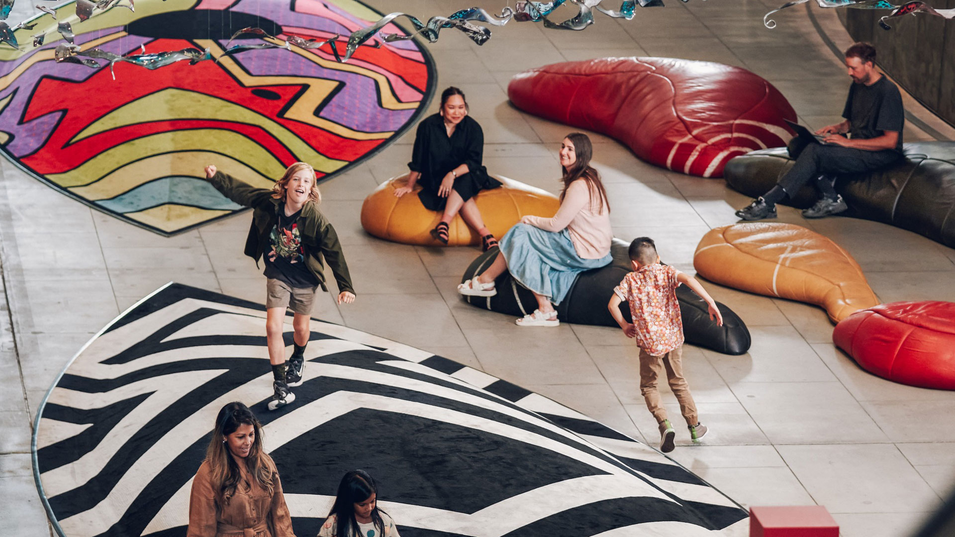 Before you finish for the day, stop by the Transcendence sculpture just outside the Museum Shop. These shield shaped volcanoes are a favourite place for kids to burn off that last bit of energy. But don’t forget to look up, or you’ll miss the form of the Birrarung (Yarra River) shaped by 157 translucent gum leaves.