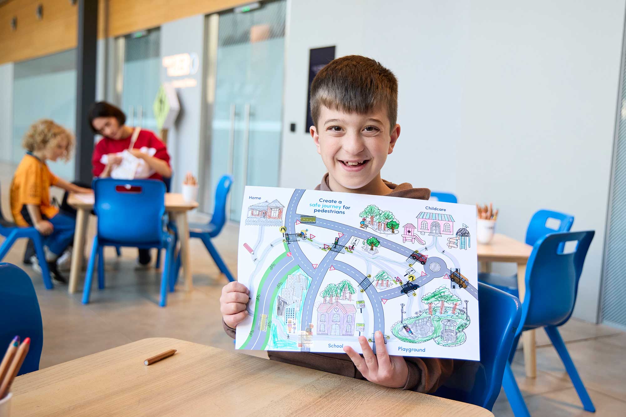 This interactive and engaging activity encourages families to think about safe journeys in their local area, while learning how everyday road features help everyone travel safely.