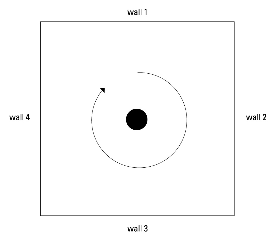 - Turn or rotate once, facing all four walls of the room when rotating (this demonstrates one rotation).
