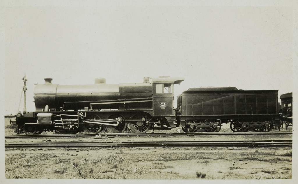 The 'Consolidation' 2-8-0 type C class locomotive design was intended as a standard heavy goods engine for mainline work. When the class leader C-1 emerged from Newport Workshops in 1918, it was the heaviest and most powerful locomotive in Australia with a power rating 205% that of the original Dd class. A total of 26 C class engines were built between 1918 and 1926. All had superheated boilers from new and were converted to oil firing in 1946-7.