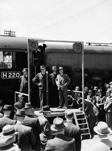 The 4-8-4 type H class locomotive, later affectionately known as 'Heavy Harry', was built by the Newport Workshops entering service in 1941. Although originally intended to haul the heavy Melbourne to Adelaide passenger express, 'Heavy Harry' spent its entire 17-year operating life relegated to working the North-East line to Wodonga after planned upgrades to bridges and tracks on the western line, to carry its colossal 260 ton weight, were never implemented. Its tractive effort of 55,000 lbs (245 kN), it was placed head and shoulders above all other Victorian steam locomotives in pulling power.