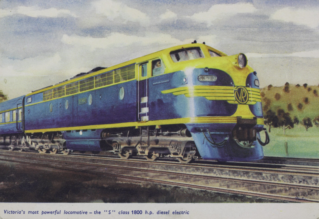 Steam locomotives have long held the fascination of young and old alike. From the sharp pant of the exhaust as a steam engine works up a steep grade, to the gentle whisper of escaping steam as it sits patiently at a platform awaiting departure, the steam locomotive appears to 'breathe' with a life of its own. The first S class diesel locomotives must have been a particularly impressive spectacle to the generation born in the grit and grime of the steam age: roaring past a trackside bystander, resplendent in gleaming blue and gold VR paintwork with the throaty growl of an 1,800 horsepower V-16 engine and a thousand ton load in tow.