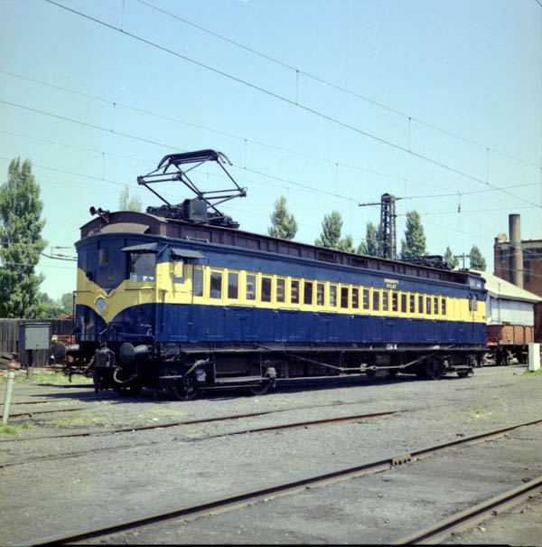 Following the successful introduction of suburban electric passenger services, the Newport Workshop built two small batches of electric locomotives for shunting work and suburban goods services, later known as E class locos. The first two, built in 1923, had a steeple cab and primitive, somewhat exposed, driver controls leading to the nickname 'Electric Chairs' amongst drivers. Ten additional units with larger box cabins were introduced during 1928-9. From 1965, the remaining ten E class electric locomotives still in service were painted with a blue and yellow livery to match the standard appearance of all the VR's diesel locomotives.