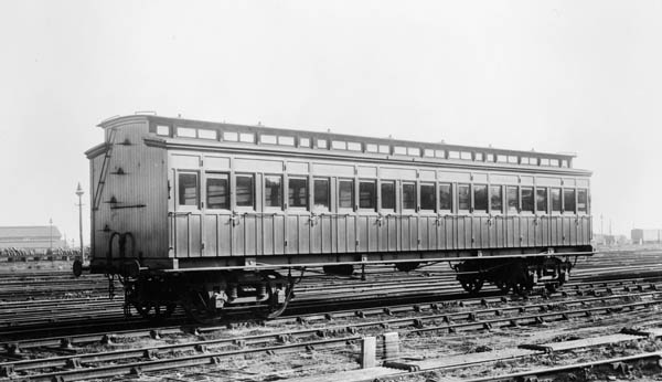 American style bogie saloon carriages with end platforms and a centre aisle were first imported in 1874, with further examples made locally over the following decade.