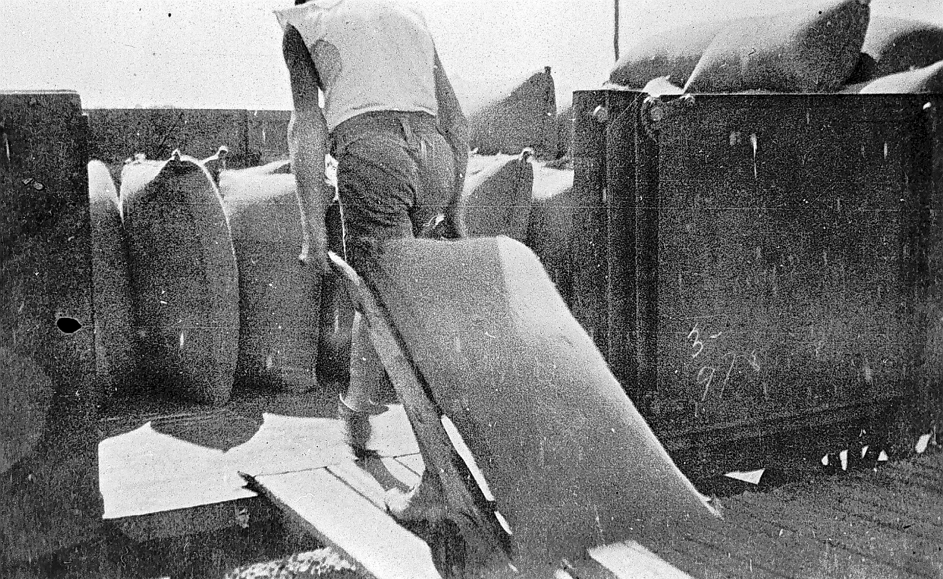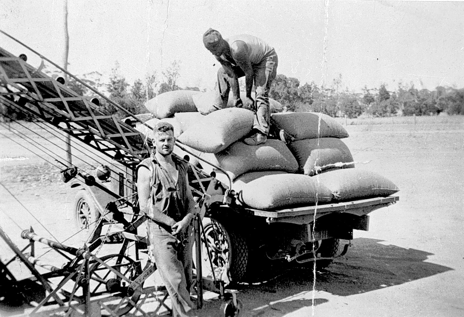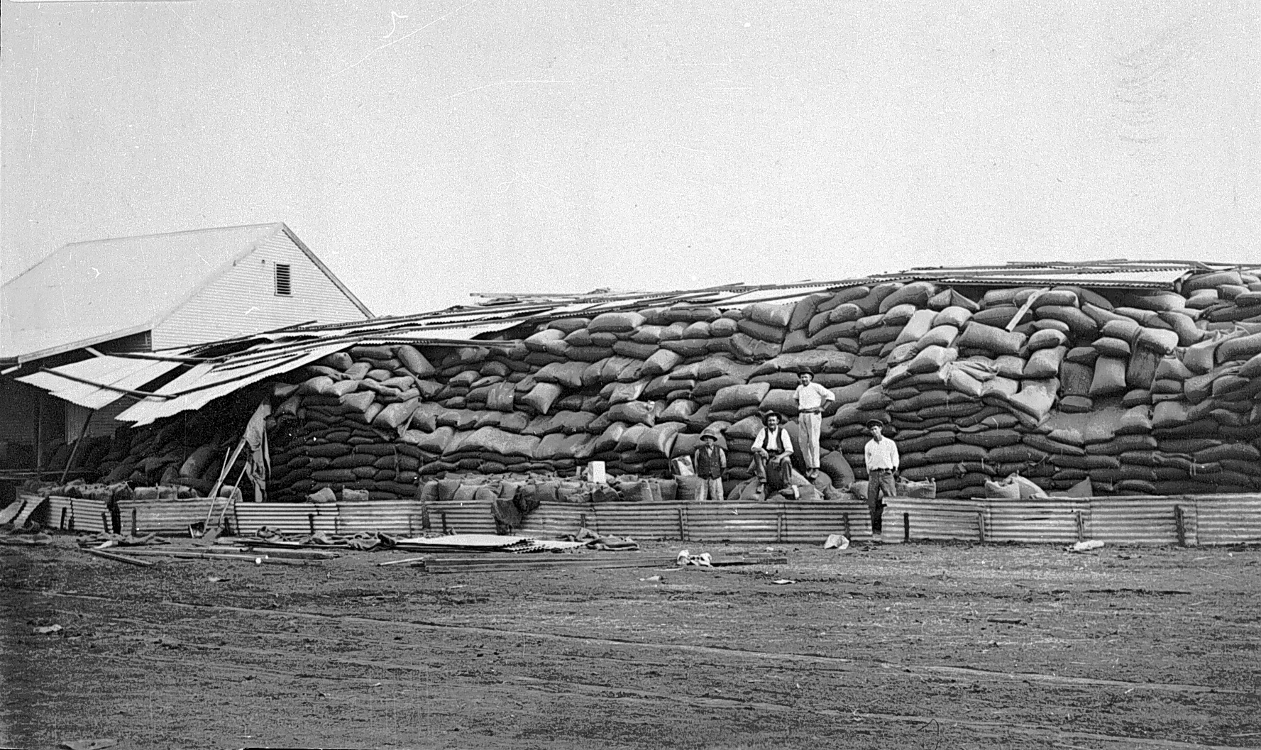 Until the late 1930s all wheat had to be packed into sacks of a size able to be manually handled. Each sack was then individually loaded through the transport chain between field and port. The enormous wheat stacks photographed at railway sidings during the early twentieth century are impressive not only for their bulk but also the amount of human labour required to build and then disassemble them. A mobile workforce of casual labourers handled the annual wheat crop at both the rural railyards and the Melbourne docks.