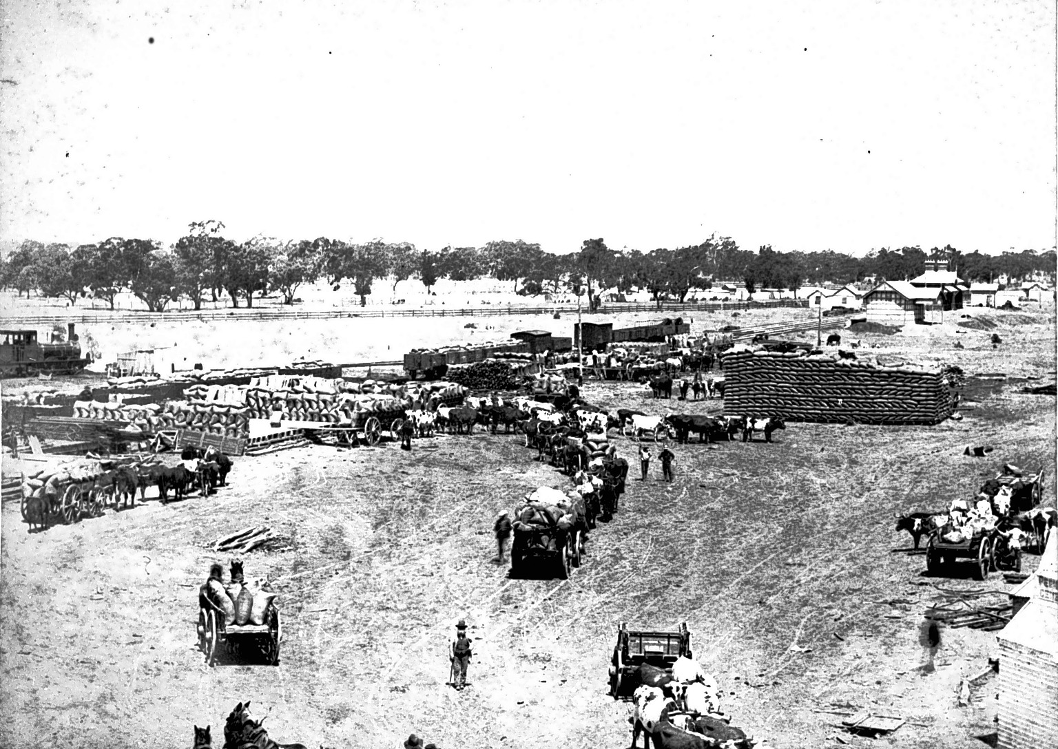 The railways and the wheat industry expanded together; in the Mallee wheatbelt the railways would at times precede settlement, with farming towns established in the wake of the rails. Wheat carted from these farms was transferred to goods trucks at the local rail siding, and then transported to Victoria's major export ports to be loaded onto ships.