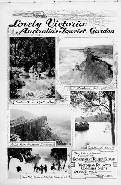 Through the twentieth century Victorian Railways produced a diverse range of tourist posters to be displayed in stations and on train service. In addition to promoting tourism within Victoria in general, Victorian Railways also owned and operated several tourist destinations – including the popular Chalet at Mt Buffalo National Park.